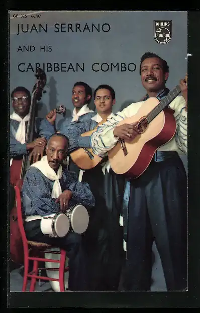 AK Musiker-Band Jean Serrano and his Caribbean Combo posieren mit Instrumenten