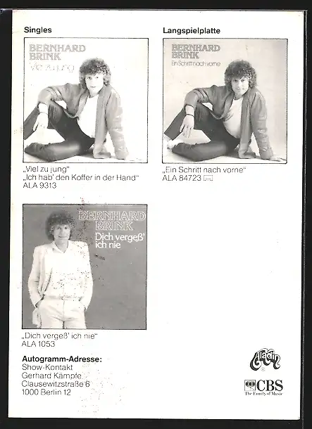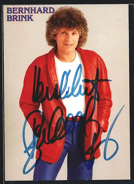 AK Musiker Bernhard Brink mit lockigem Haar in roter Lederjacke, mit Autograph