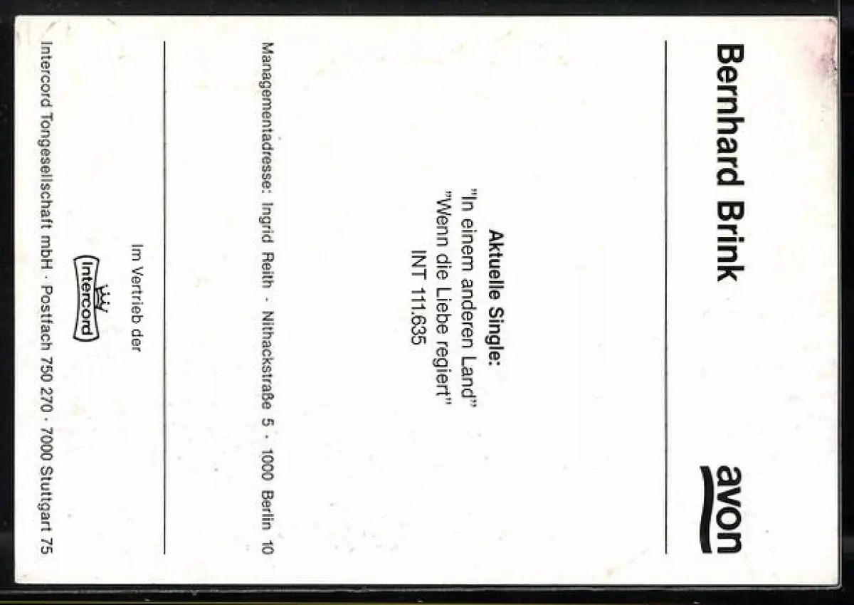 AK Musiker Bernhard Brink mit nachdenklichem Blick, Autograph