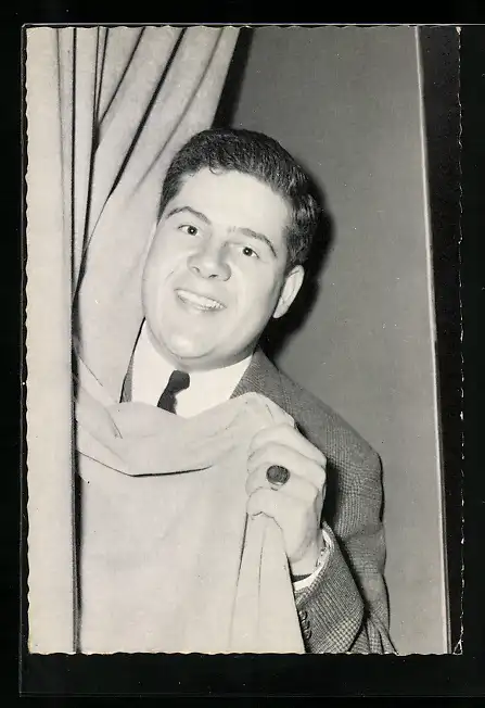 AK Musiker Bill Ramsey hinter Vorhang stehend porträtiert