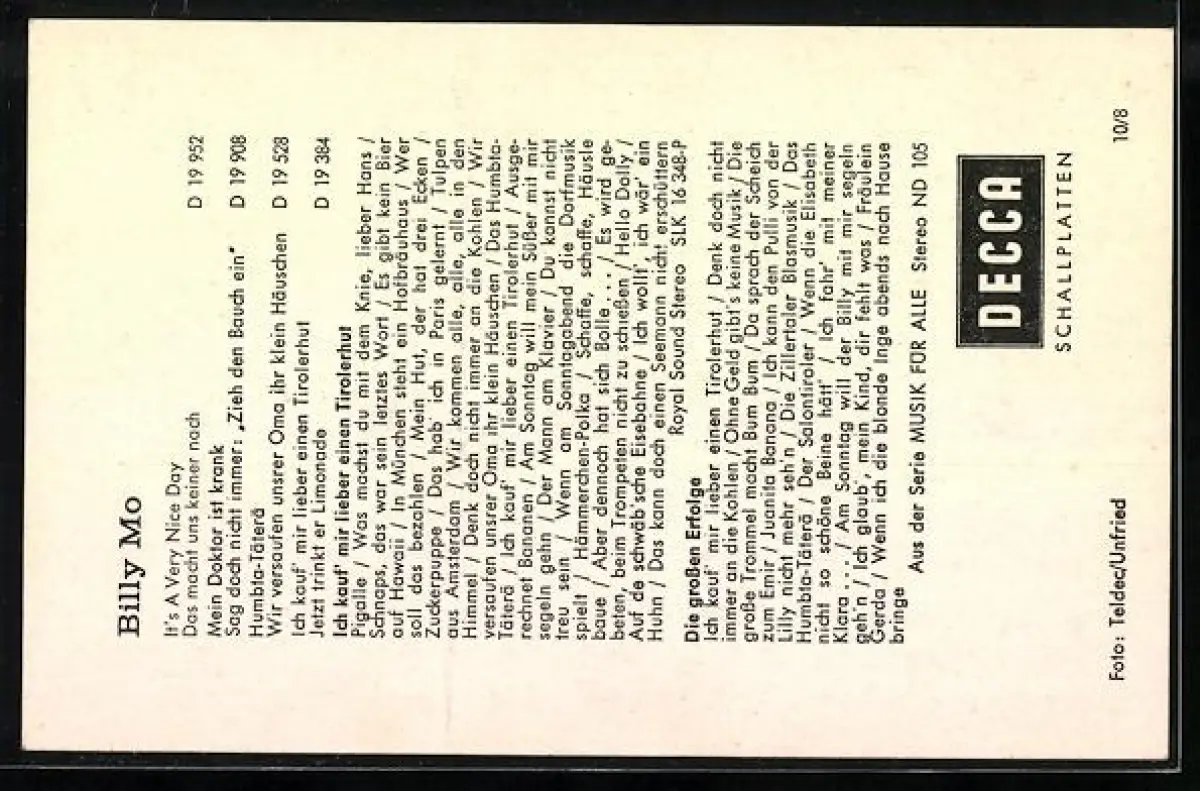 AK Musiker Billy Mo benutzt seinen Spazierstock als Querflöte, Autograph