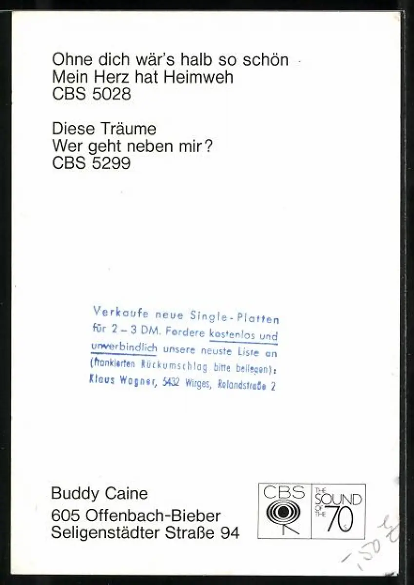 AK Musiker Buddy Caine mit Krawatte, Autograph