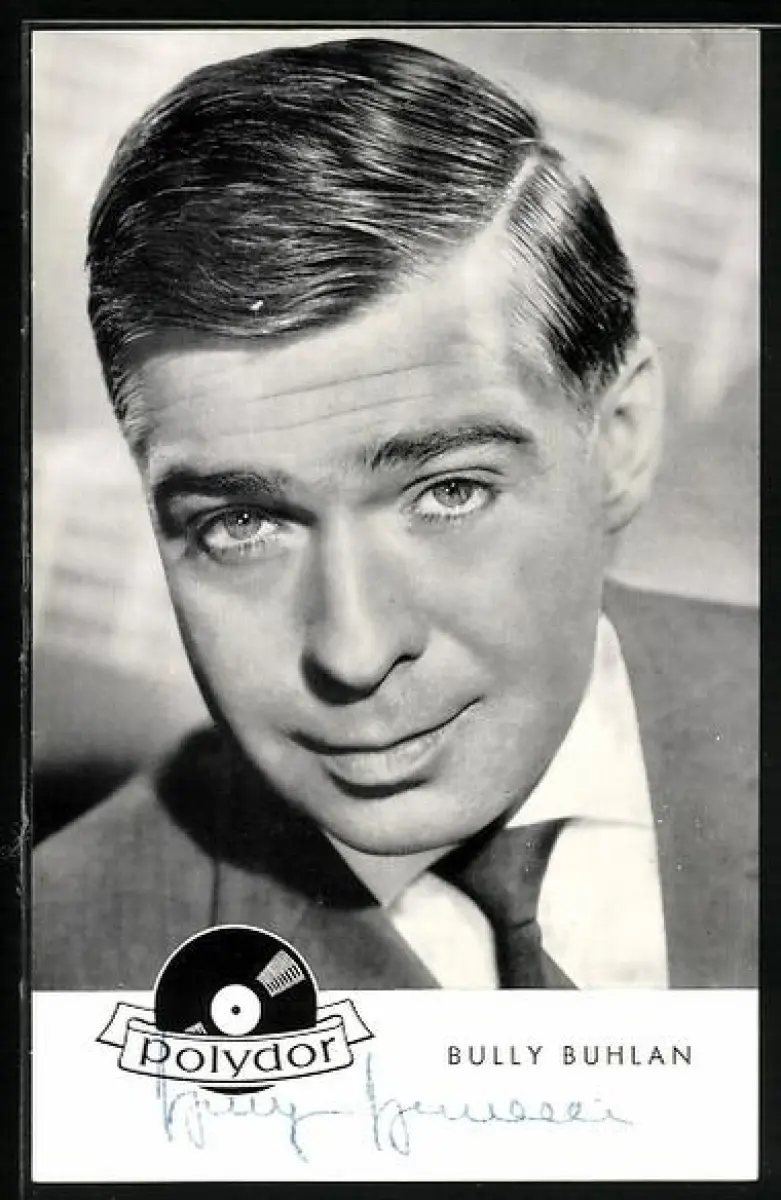 AK Musiker Bully Buhlan mit aufforderndem Blick, Autograph