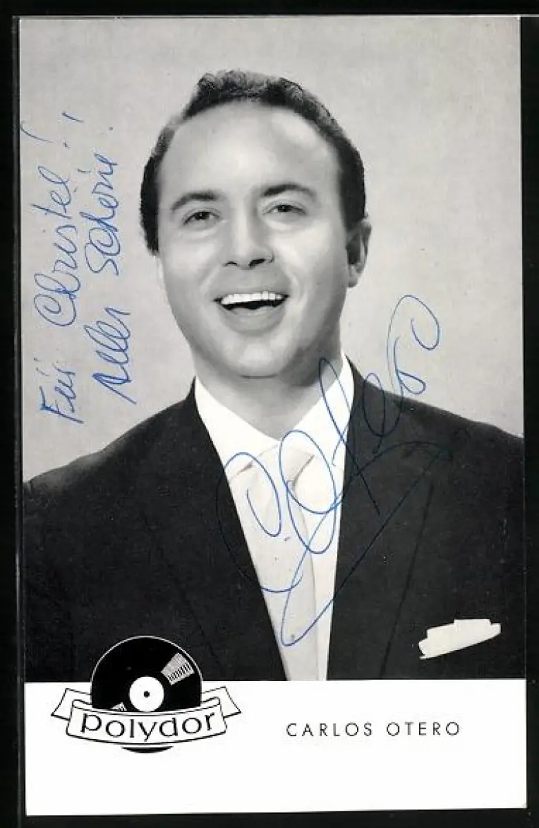 AK Musiker Carlos Otero im dunklen Anzug portraitiert, Autograph