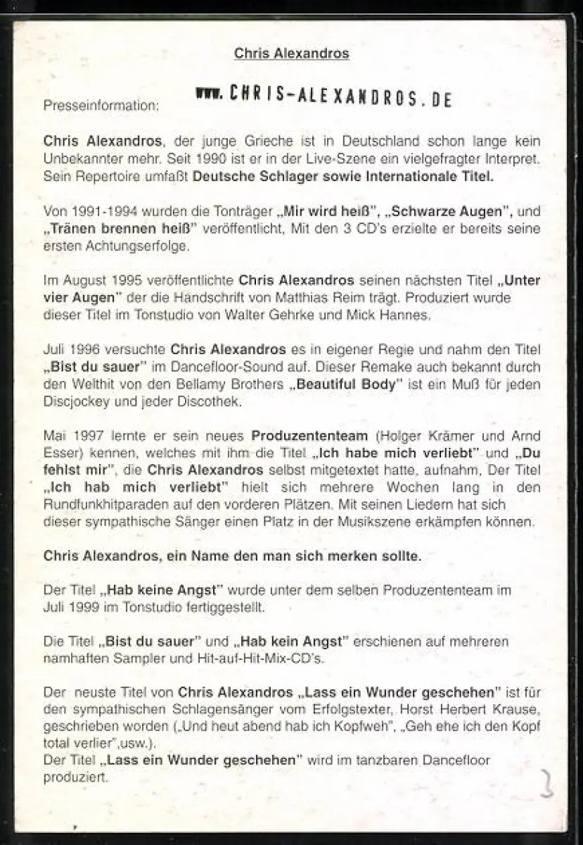 AK Musiker Chris Alexandros vor orangefarbenem Hintergrund, Autograph