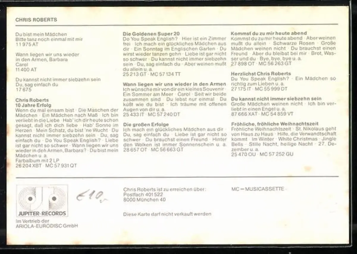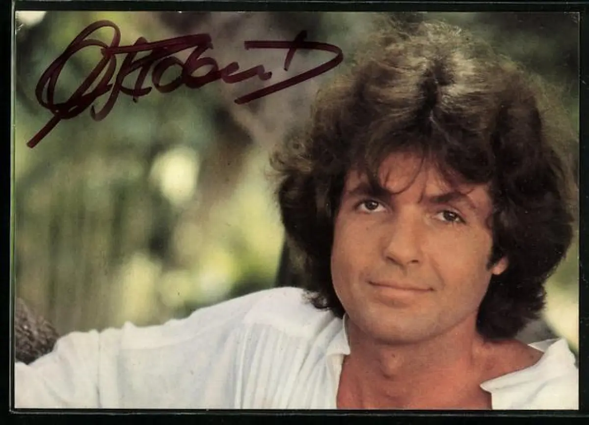 AK Musiker Chris Roberts im weissen Hemd fotografiert, Autograph