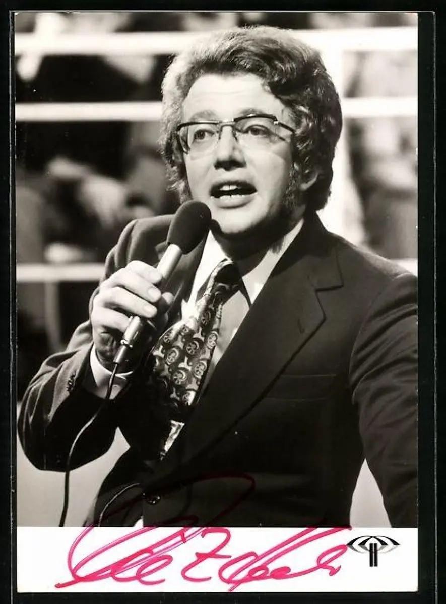 AK Musiker Dieter Thomas Heck mit Mikrophon, Autograph