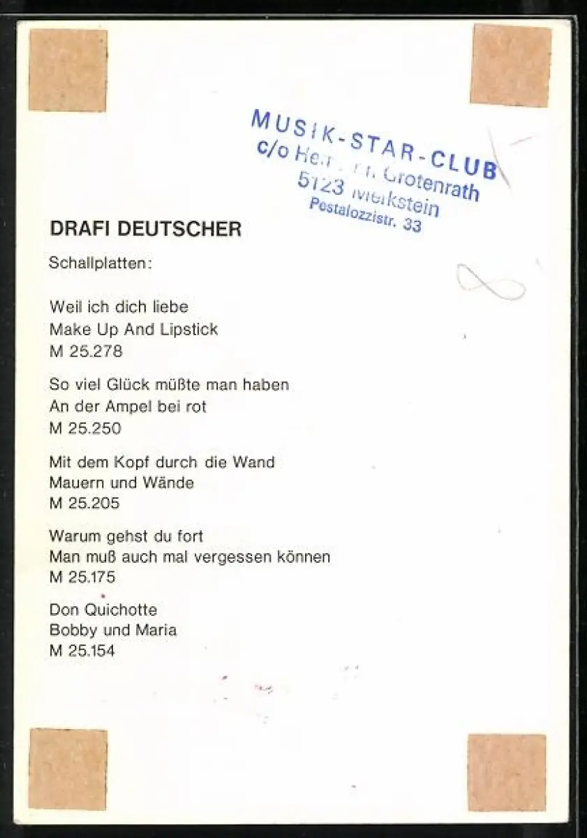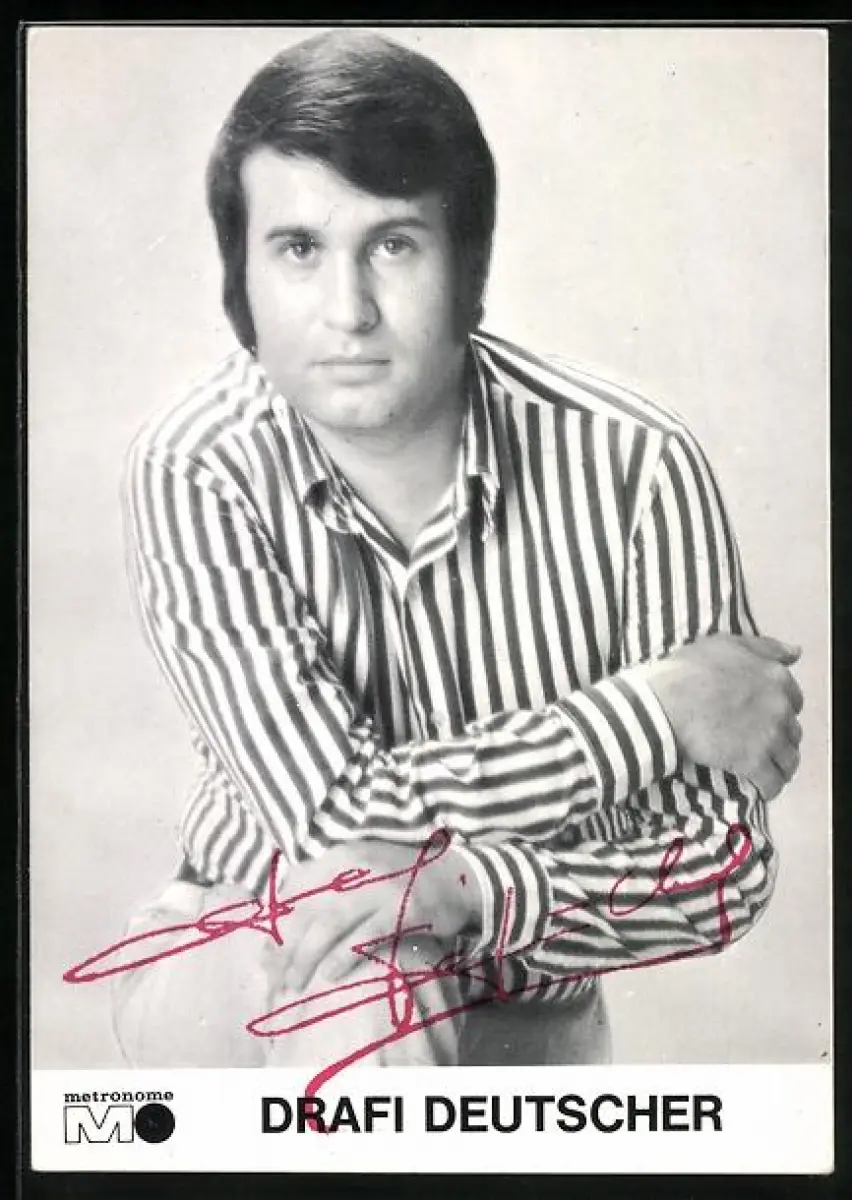 AK Musiker Drafi Deutscher in gestreiftem Hemd, Autograph