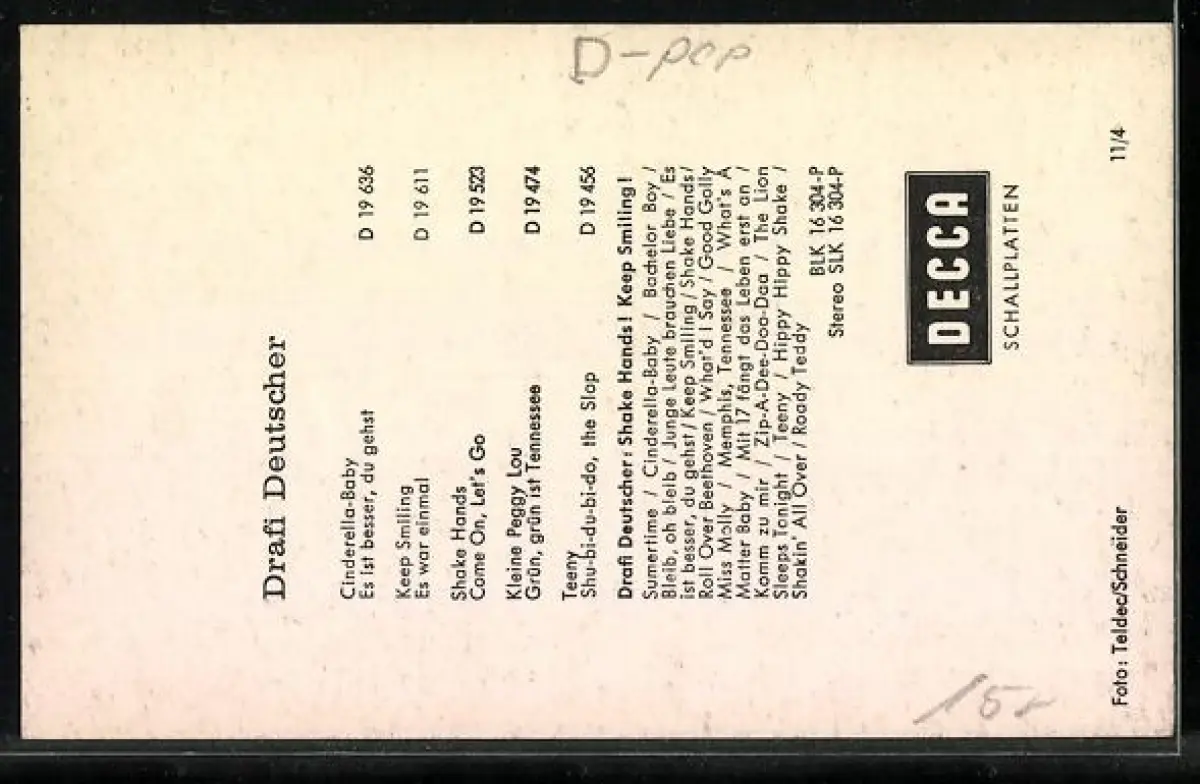 AK Musiker Drafi Deutscher stehend in einem Cabriolet, Autograph