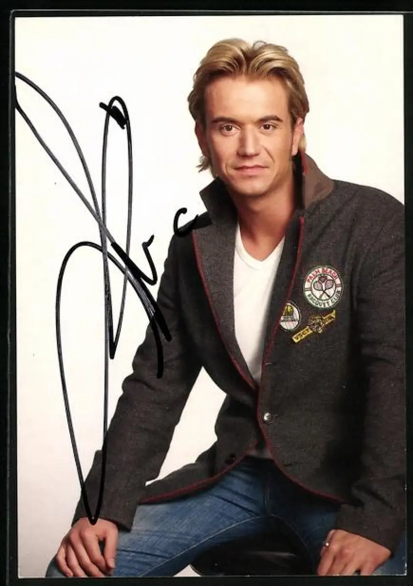 AK Musiker Florian Silbereisen sitzend in die Kamera schauend, Autograph
