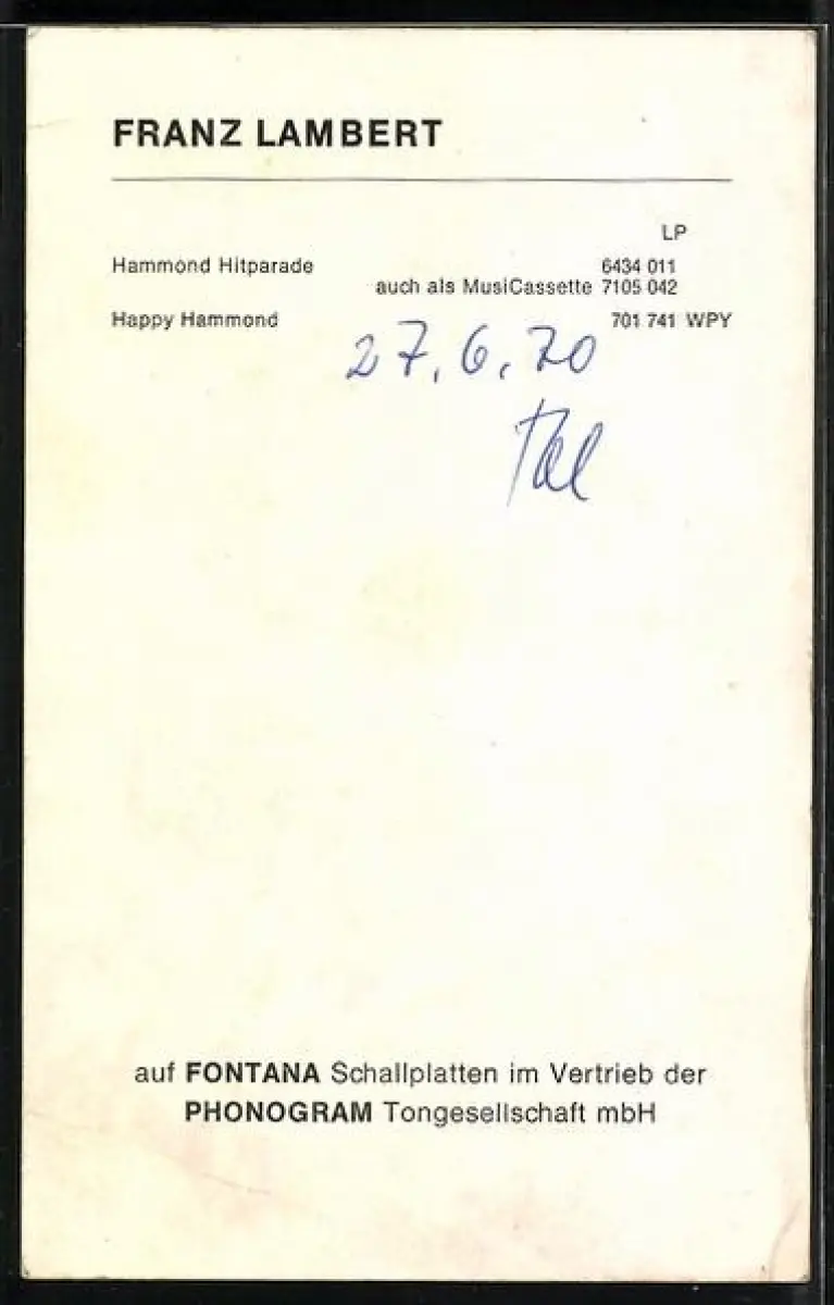 AK Musiker Franz Lambert lächelnd im Porträt, Autograph