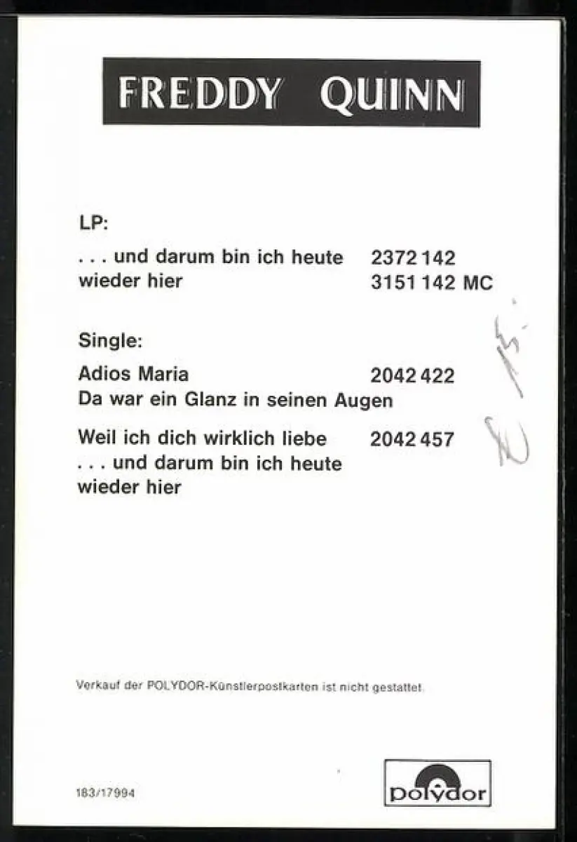 AK Musiker Freddy Quinn im Anzug, Autograph