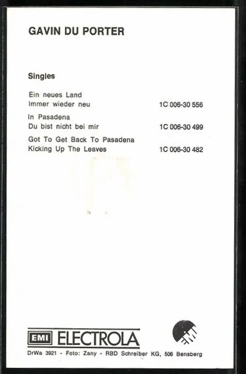 AK Musiker Gavin du Porter mit auffälliger Frisur, Musiker, Autograph