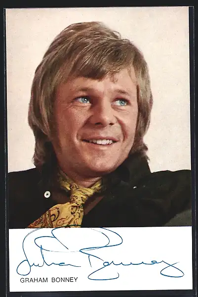 AK Musiker Graham Bonney lächelnd mit einem gelben Halstuch, mit Autograph