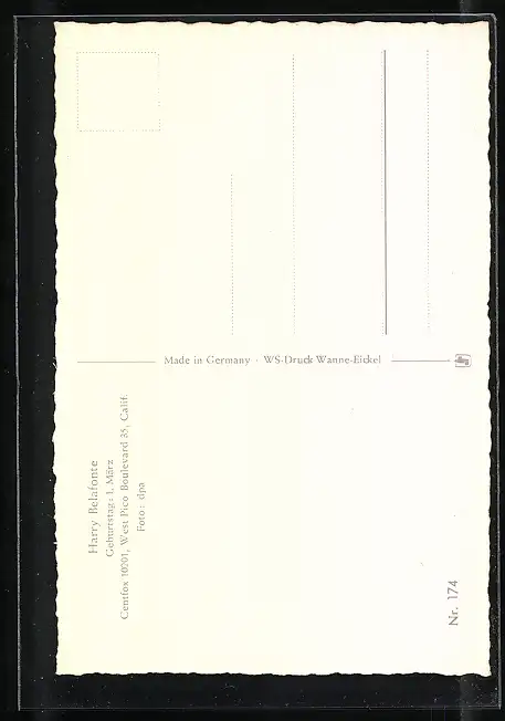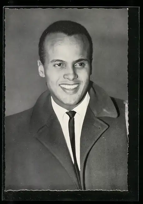 AK Musiker Harry Belafonte lächelnd in Mantel mit Krawatte