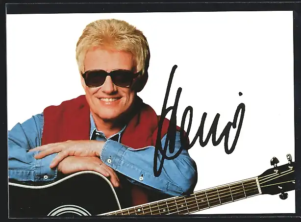AK Musiker Heino, Portrait mit Gitarre, mit Autograph