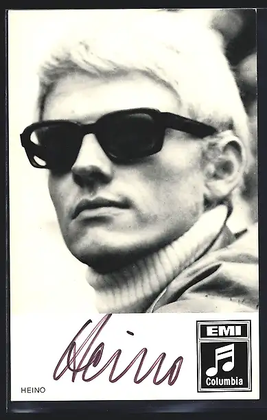 AK Musiker Heino mit Sonnenbrille und Rollkragenpullover, mit Autograph
