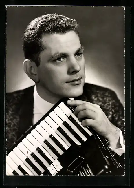 AK Musiker Heinz Glückert mit Akkordeon, Autogramm