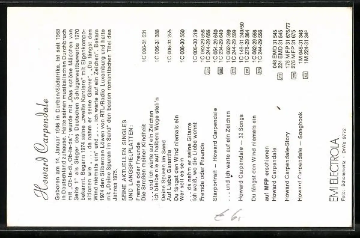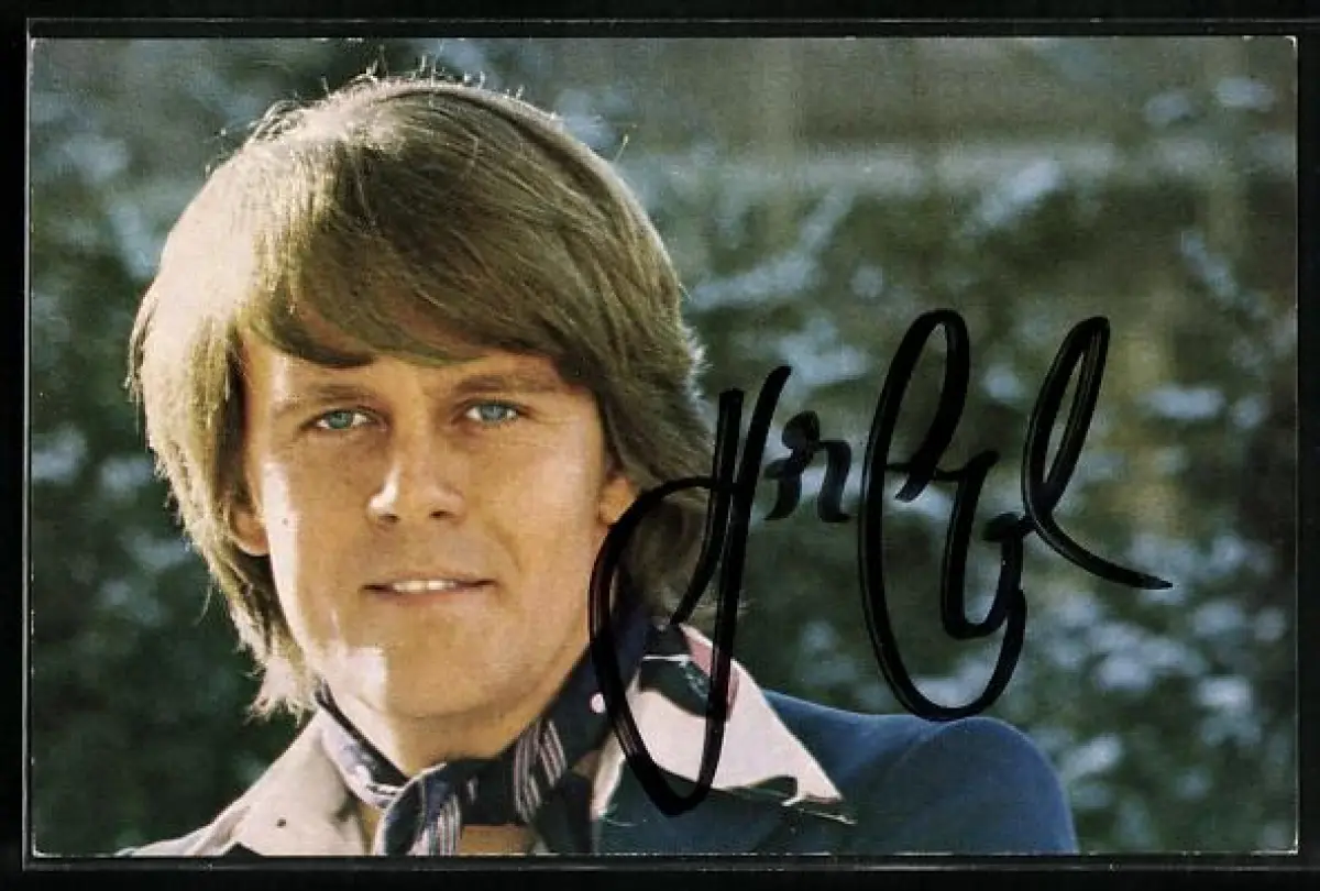AK Musiker Howard Carpendale mit blauem Halstuch, Autograph
