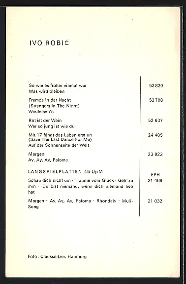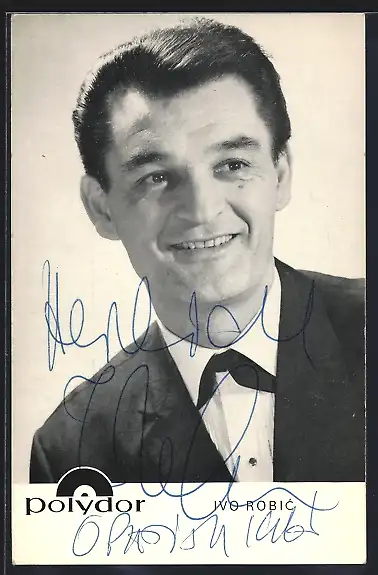 AK Musiker Ivo Robic im Anzug mit leichtem Lächeln, mit Autograph