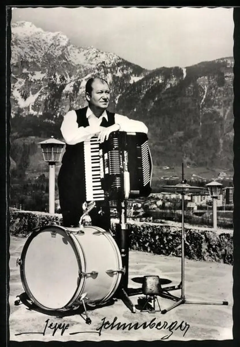 AK Musiker Jeppe Johensberger mit Akkordeon, Autograph