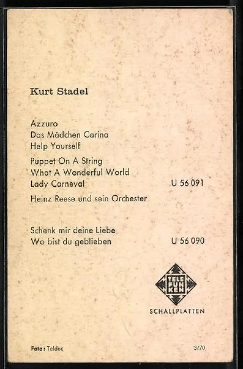AK Musiker Kurt Stadel im roten Rollkragenpullover, Autograph