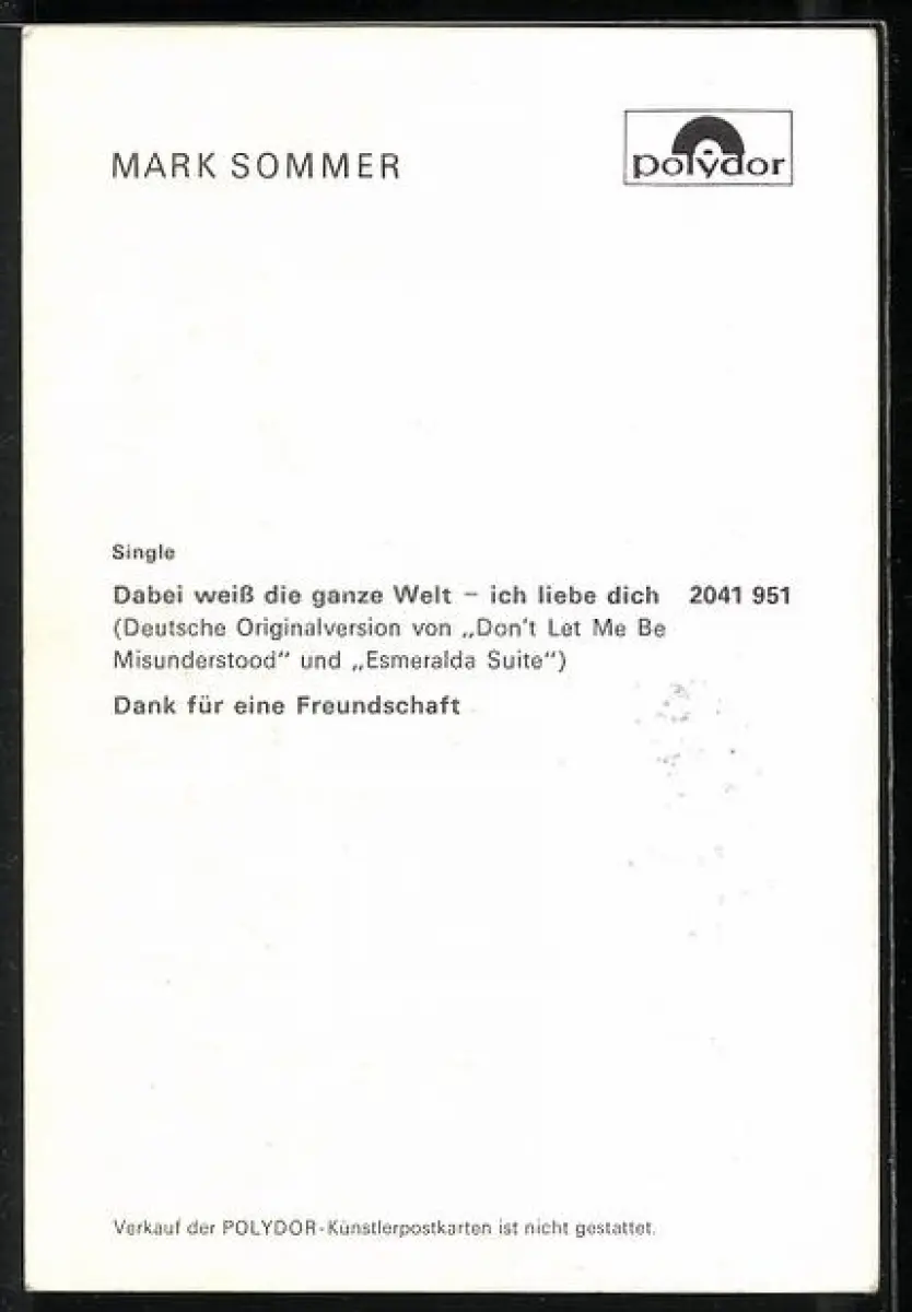 AK Musiker Mark Sommer in roter Jacke, Autograph
