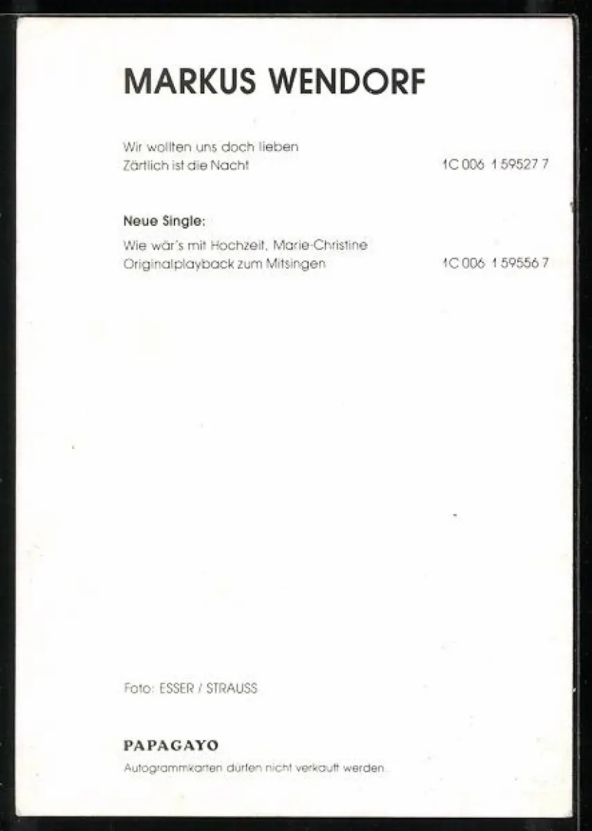 AK Musiker Markus Wendorf in gestreiftem Hemd, Autograph