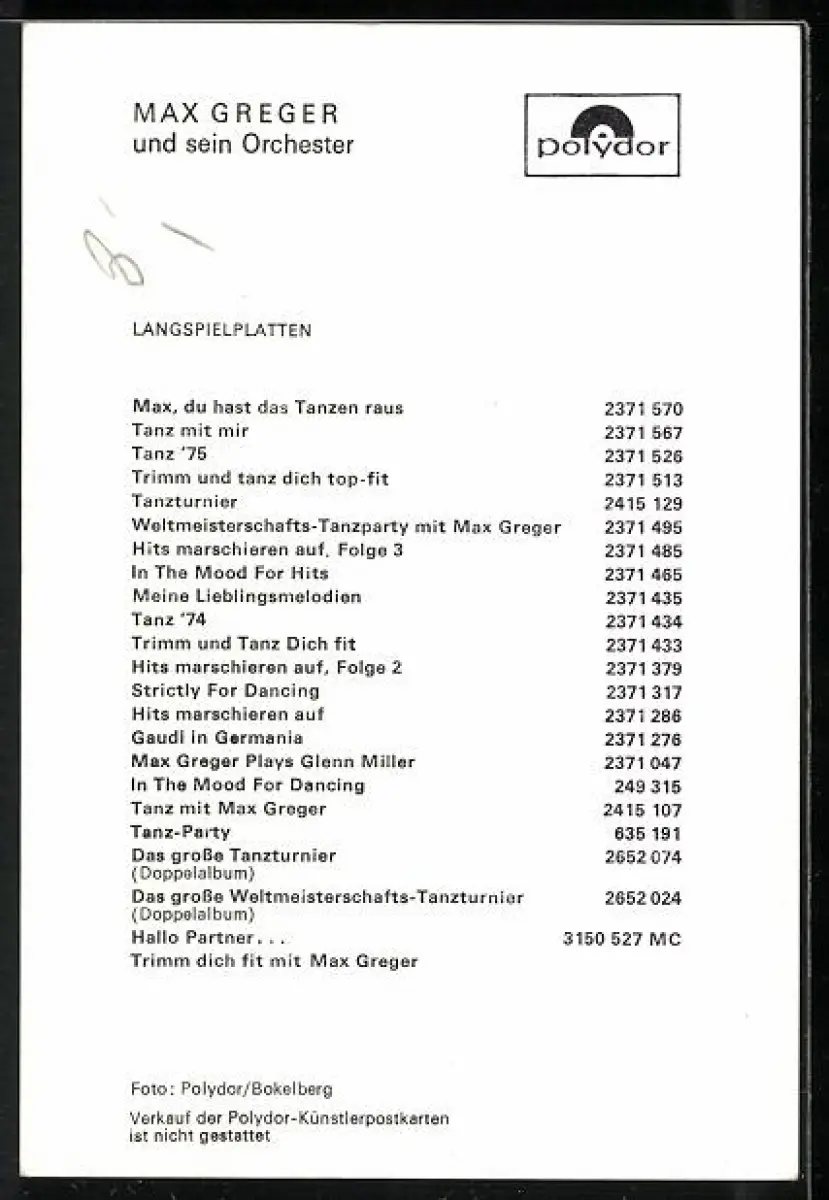 AK Musiker Max Greger in weissem Sakko, Autograph