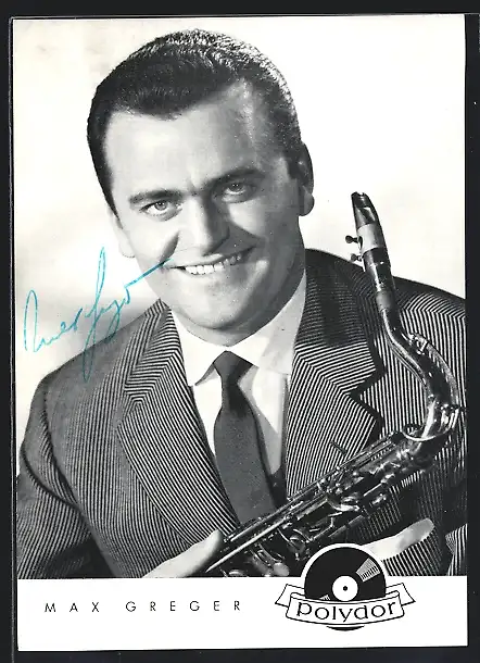 AK Musiker Max Greger mit Saxophon, Autograph