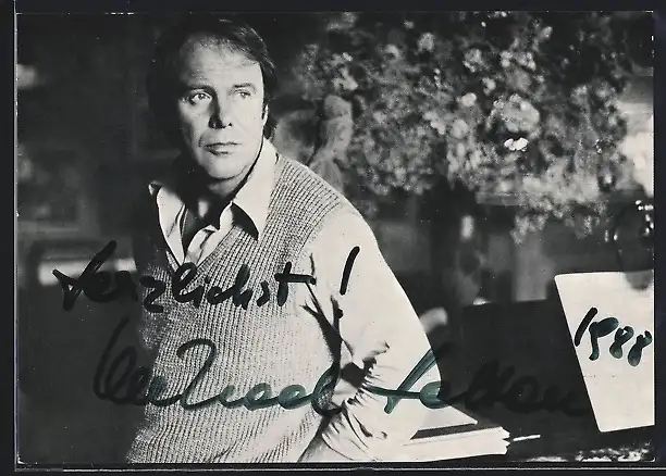 AK Musiker Michael Heltau in Hemd und Pullunder, mit Autograph