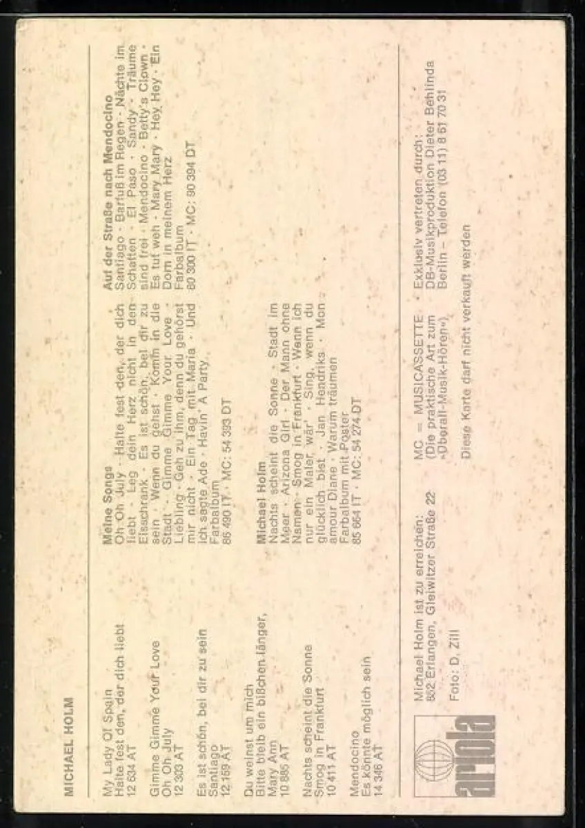 AK Musiker Michael Holm in blauem Hemd, Autograph