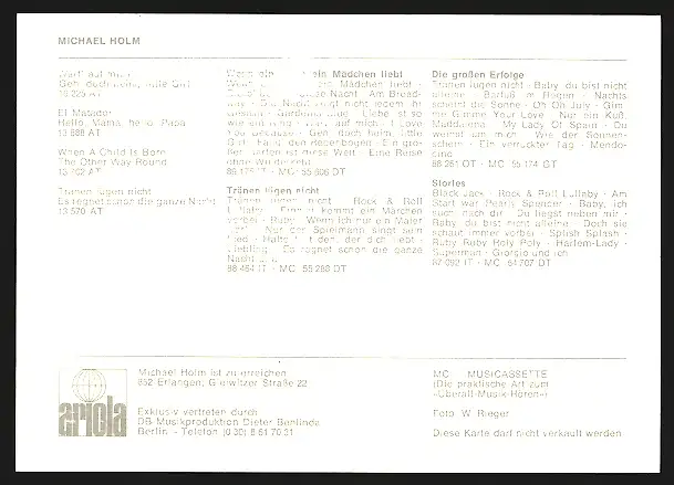 AK Musiker Michael Holm mit rotem Halstuch in einem Sessel, mit Autograph