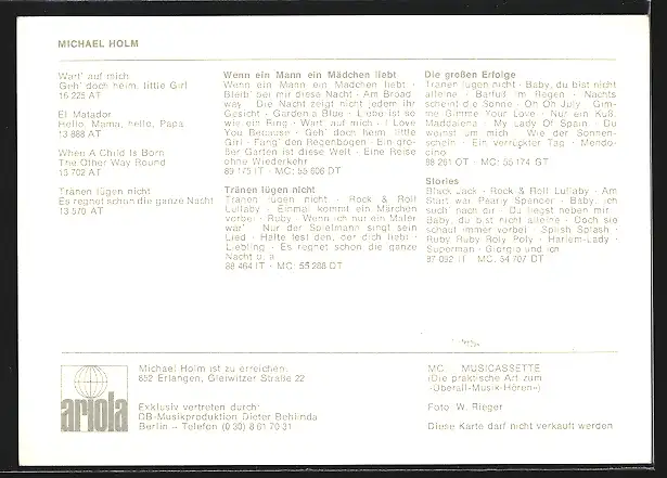AK Musiker Michael Holm sitzt nachdenklich in einem Sessel, mit Autograph