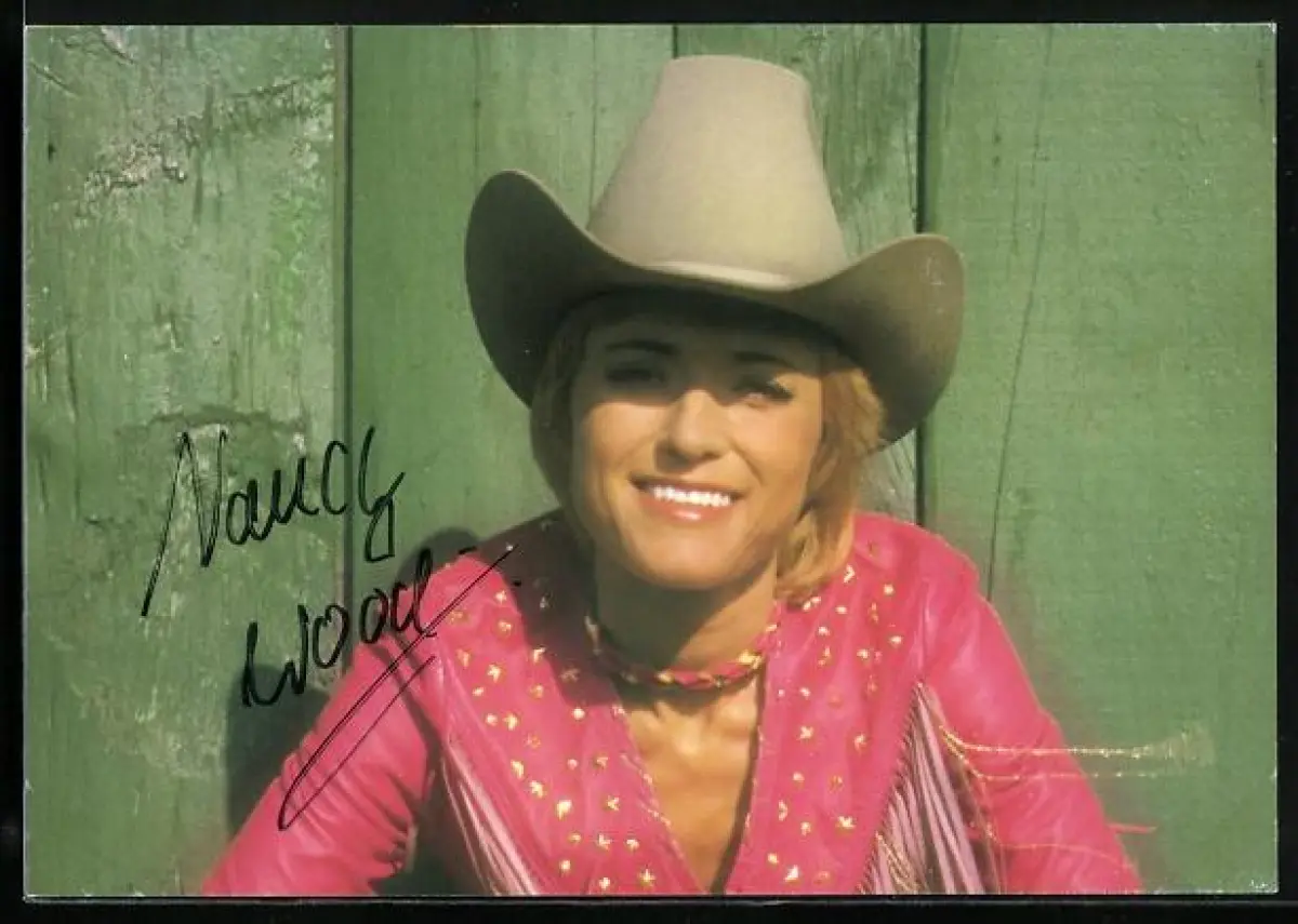 AK Musiker Nancy Wood mit einem Cowboyhut, Autograph