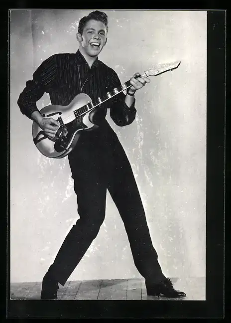 AK Musiker Peter Kraus mit elektrischer Gitarre