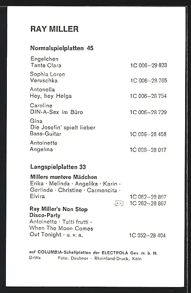 AK Musiker Ray Miller lächelnd mit Koteletten, mit Autograph
