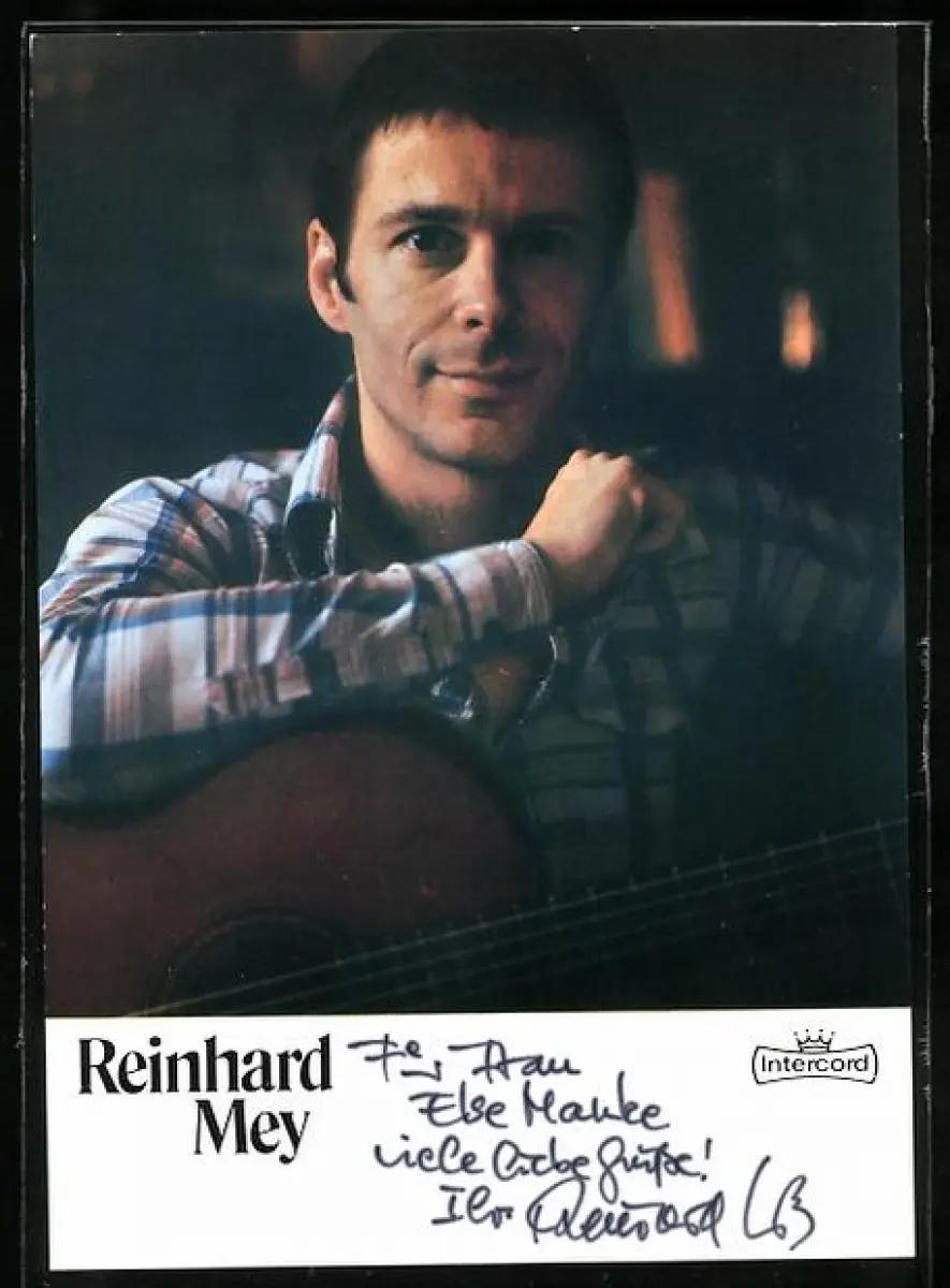 AK Musiker Reinhard Mey mit Gitarre, Autograph