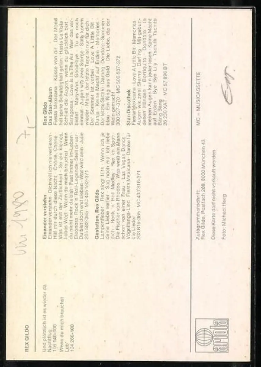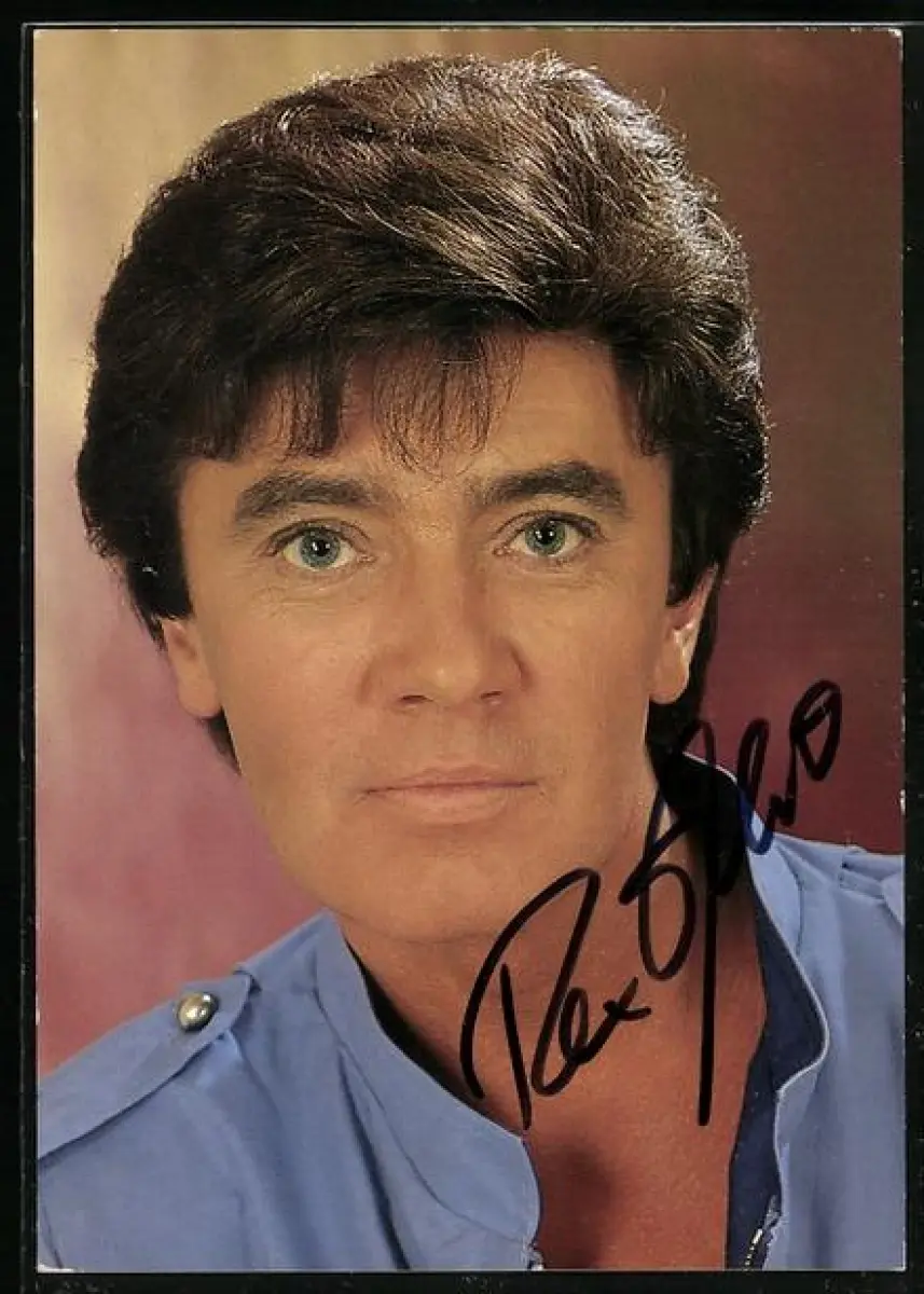 AK Musiker Rex Gildo im blauen Hemd, Autograph