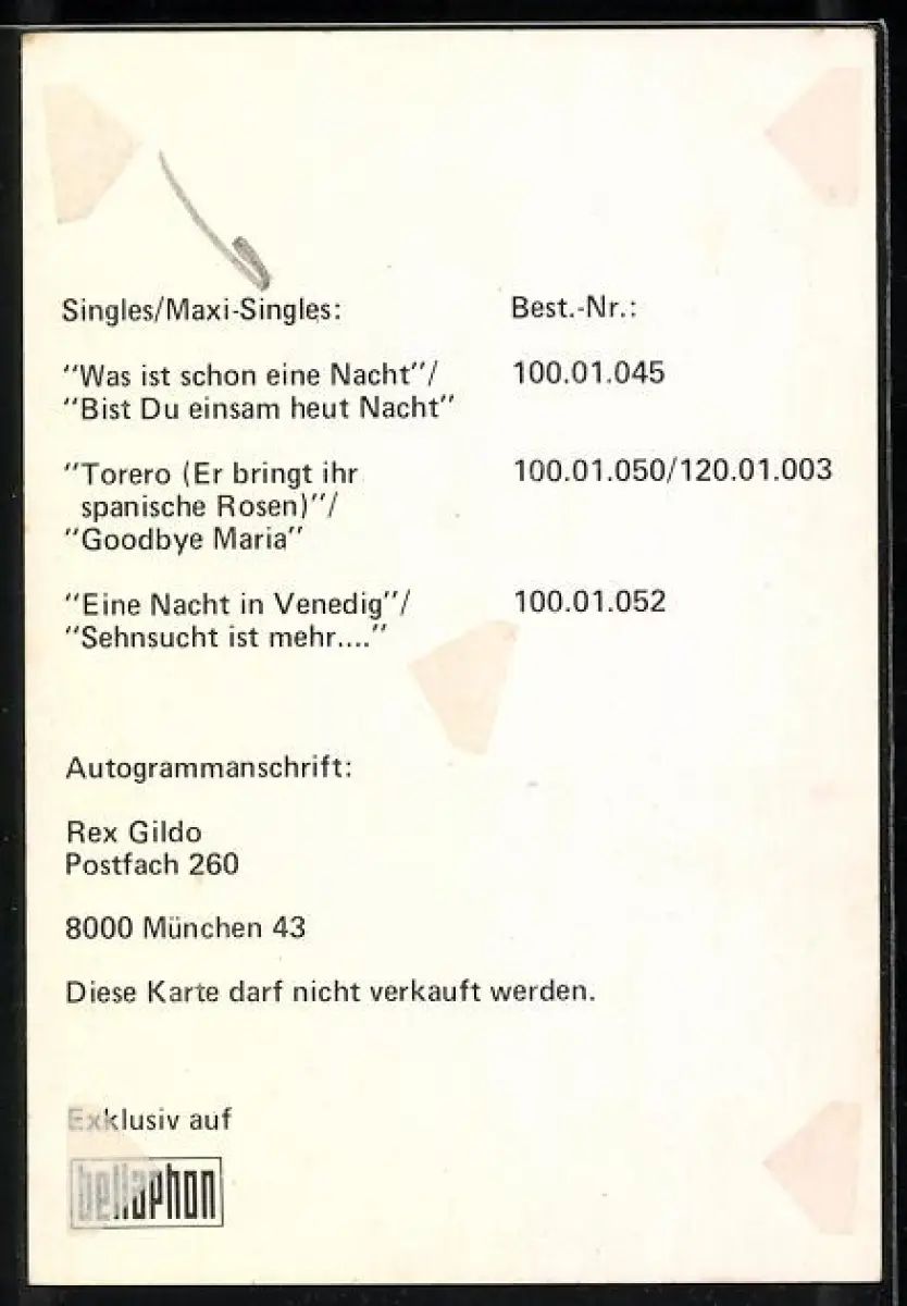 AK Musiker Rex Gildo in blauem Jackett, Autograph