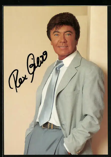 AK Musiker Rex Gildo mit Anzug und Krawatte, original Autograph