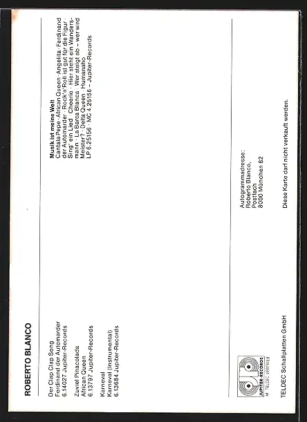 AK Musiker Roberto Blanco mit breitem Lächeln und einer Kette, mit Autograph