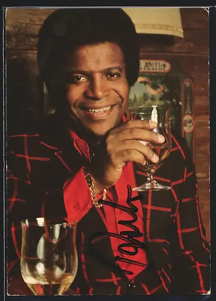 AK Musiker Roberto Blanco prostet mit einem Glas Weiswein, mit Autograph