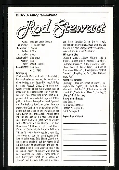 AK Musiker Rod Stewart mit verschränkten Armen porträtiert