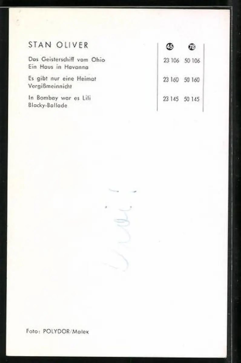 AK Musiker Stan Oliver in die Kamera blickend, Autograph
