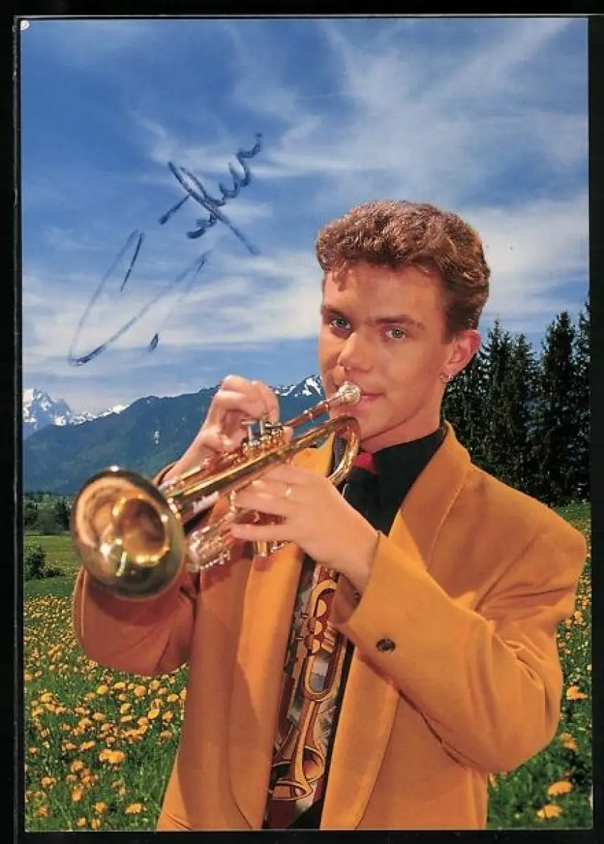 AK Musiker Stefan Mross in gelbem Sakko, Autograph