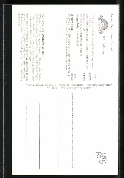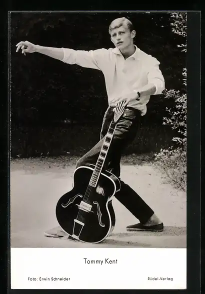 AK Musiker Tommy Kent als Anhalter mit Gitarre