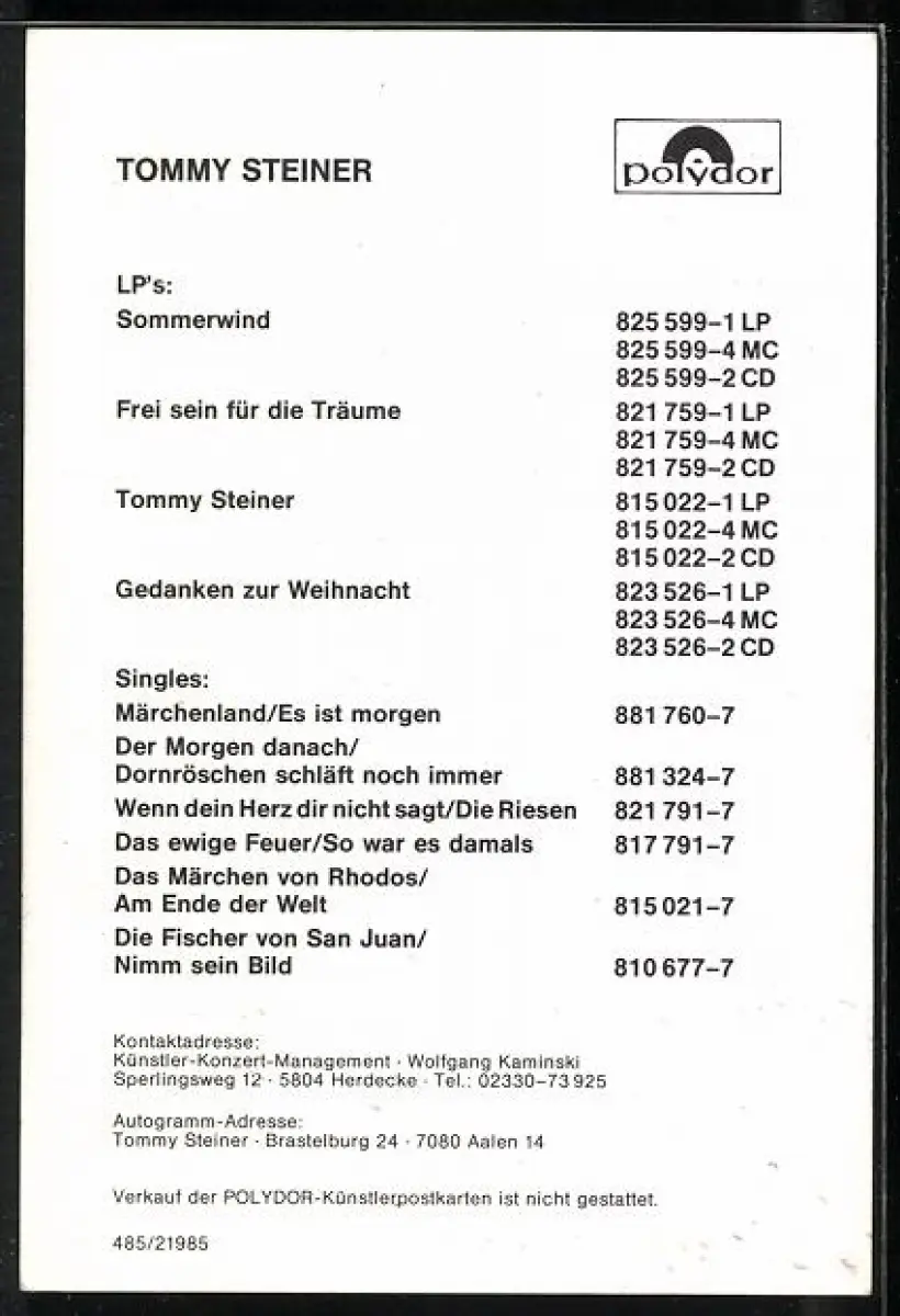 AK Musiker Tommy Steiner im Porträt, Autograph