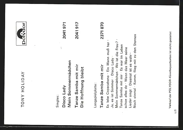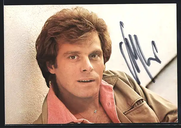 AK Musiker Tony Holiday mit lachs-farbenem Hemd und beiger Jacke, mit Autograph