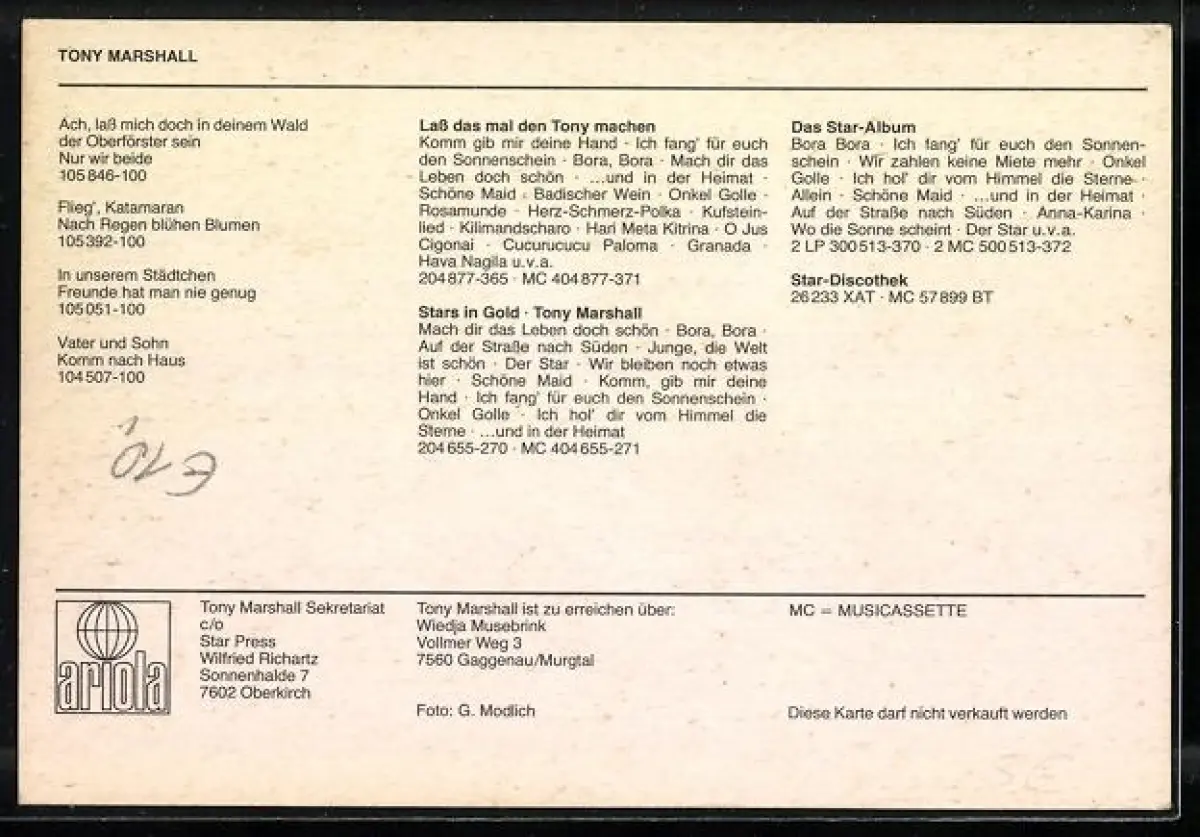 AK Musiker Tony Marshall mit Gitarre, Autograph